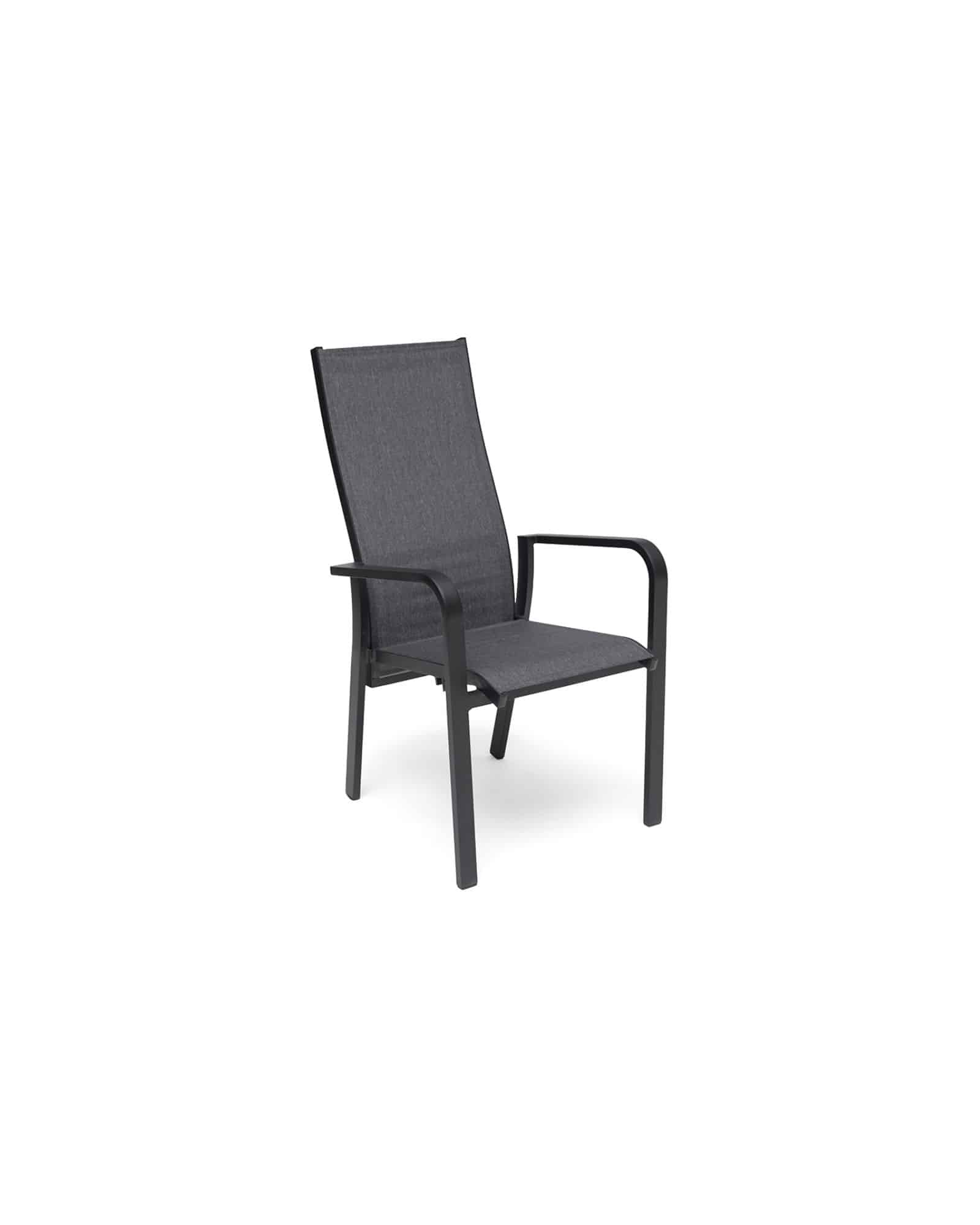 En av Hillerstorp mest säljbara stolar! Nu i en ny sober kulör. Underhållsfri positionsstol som med sin lätthet i designen skapar ett stilrent och modernt uttryck. Tillverkad i aluminium med sits- och rygg i textilene. Stolen är ställbar i olika lägen samt stapelbar.