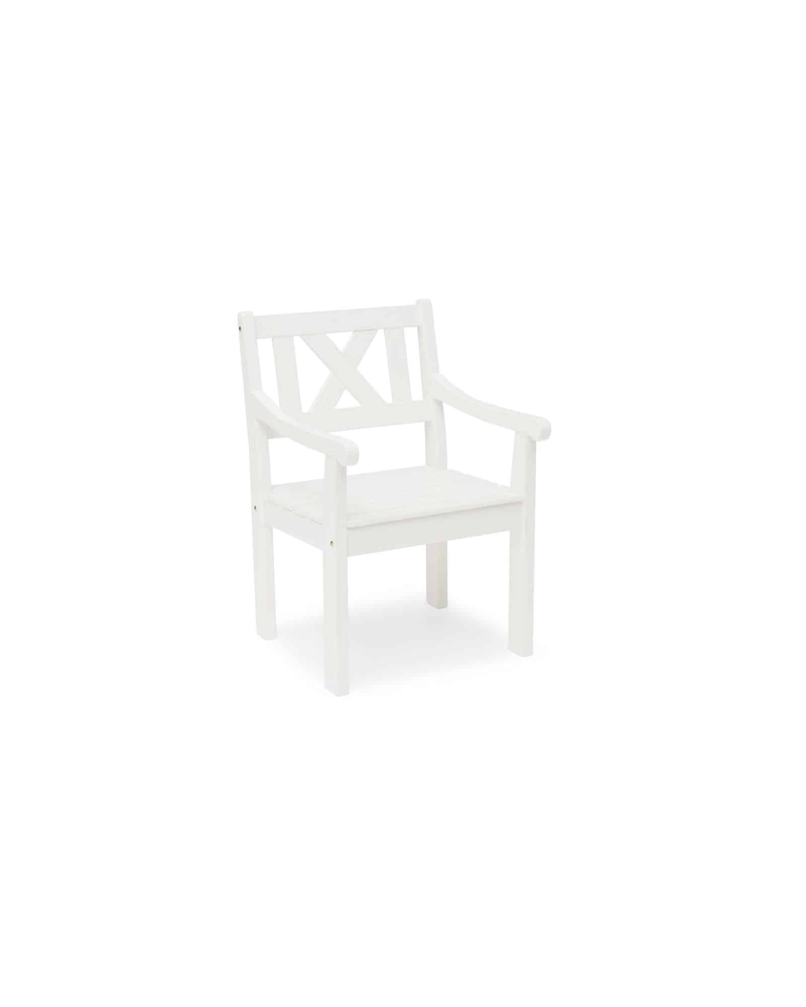 En klassisk fåtölj i vitlackad FSC®-märkt kärnfuru.