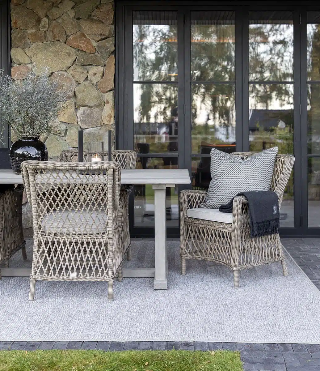 Möblerna rekommenderas för användning både inomhus och utomhus.