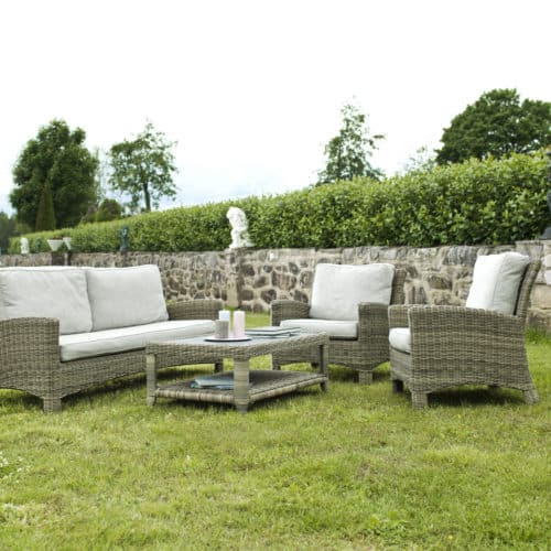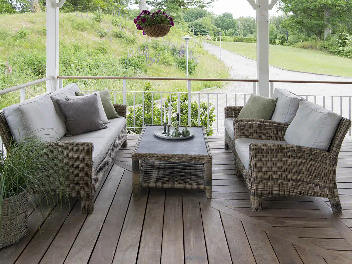 Hillerstorp Soffa Dallas från Hillerstorp, är en exklusiv soffa som med sin tidlösa design ger ett stilfullt och klassiskt intryck. Tillverkad i konstrotting flätad kring en stomme av aluminium.