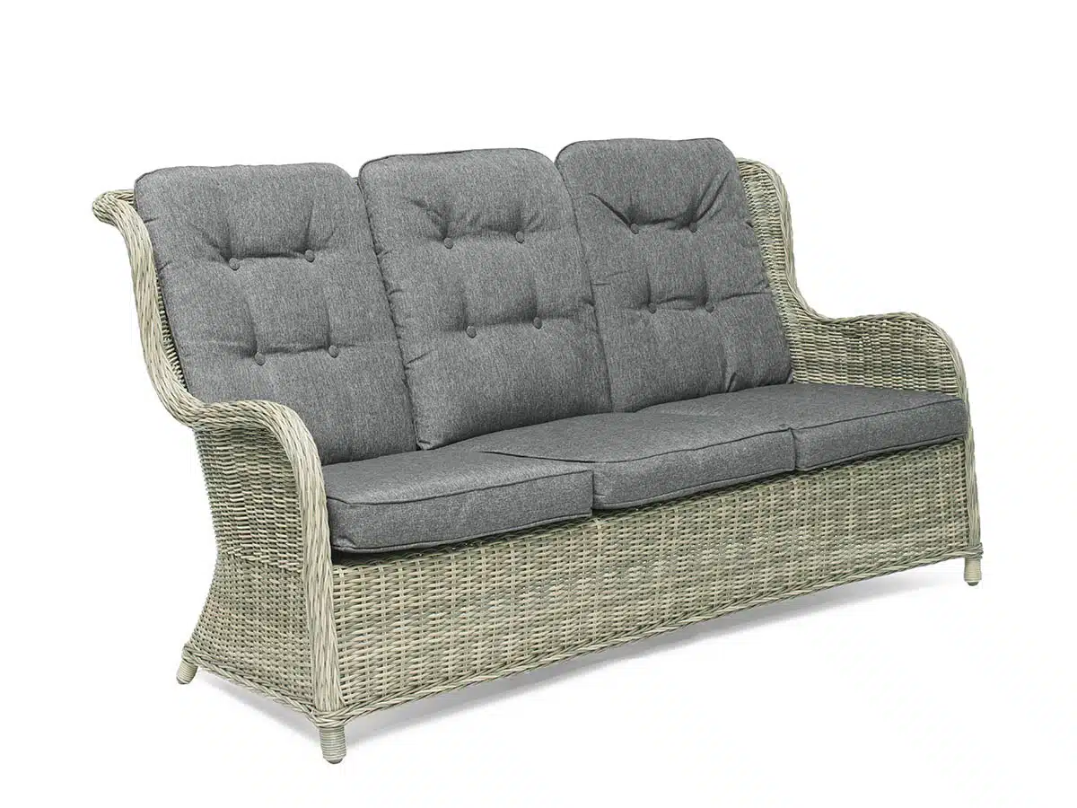 Vacker soffa i konstrotting som blir perfekt på din uteplats! Gråa dynor ingår.
