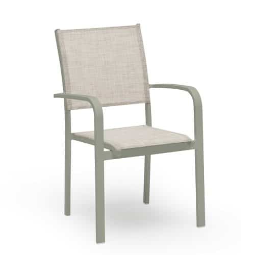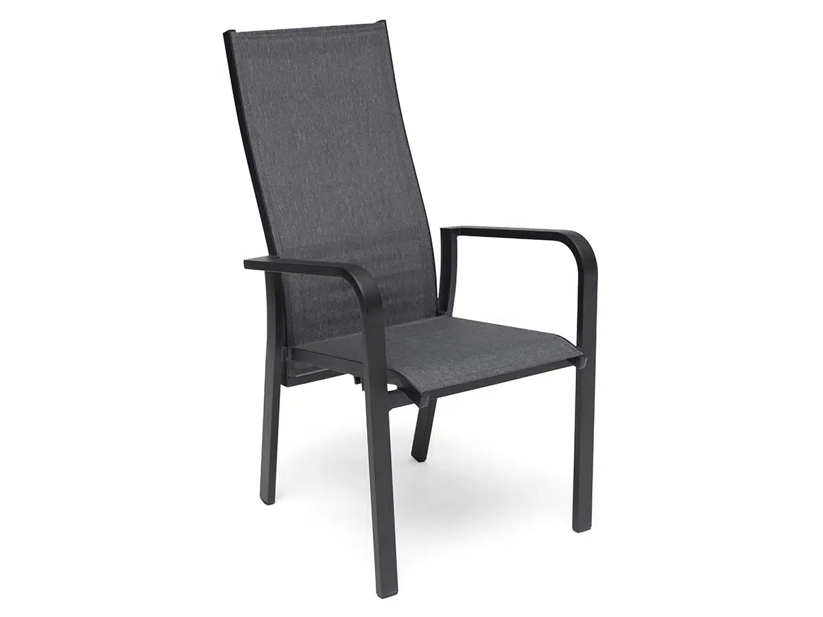 En av Hillerstorp mest säljbara stolar! Nu i en ny sober kulör. Underhållsfri positionsstol som med sin lätthet i designen skapar ett stilrent och modernt uttryck. Tillverkad i aluminium med sits- och rygg i textilene. Stolen är ställbar i olika lägen samt stapelbar.