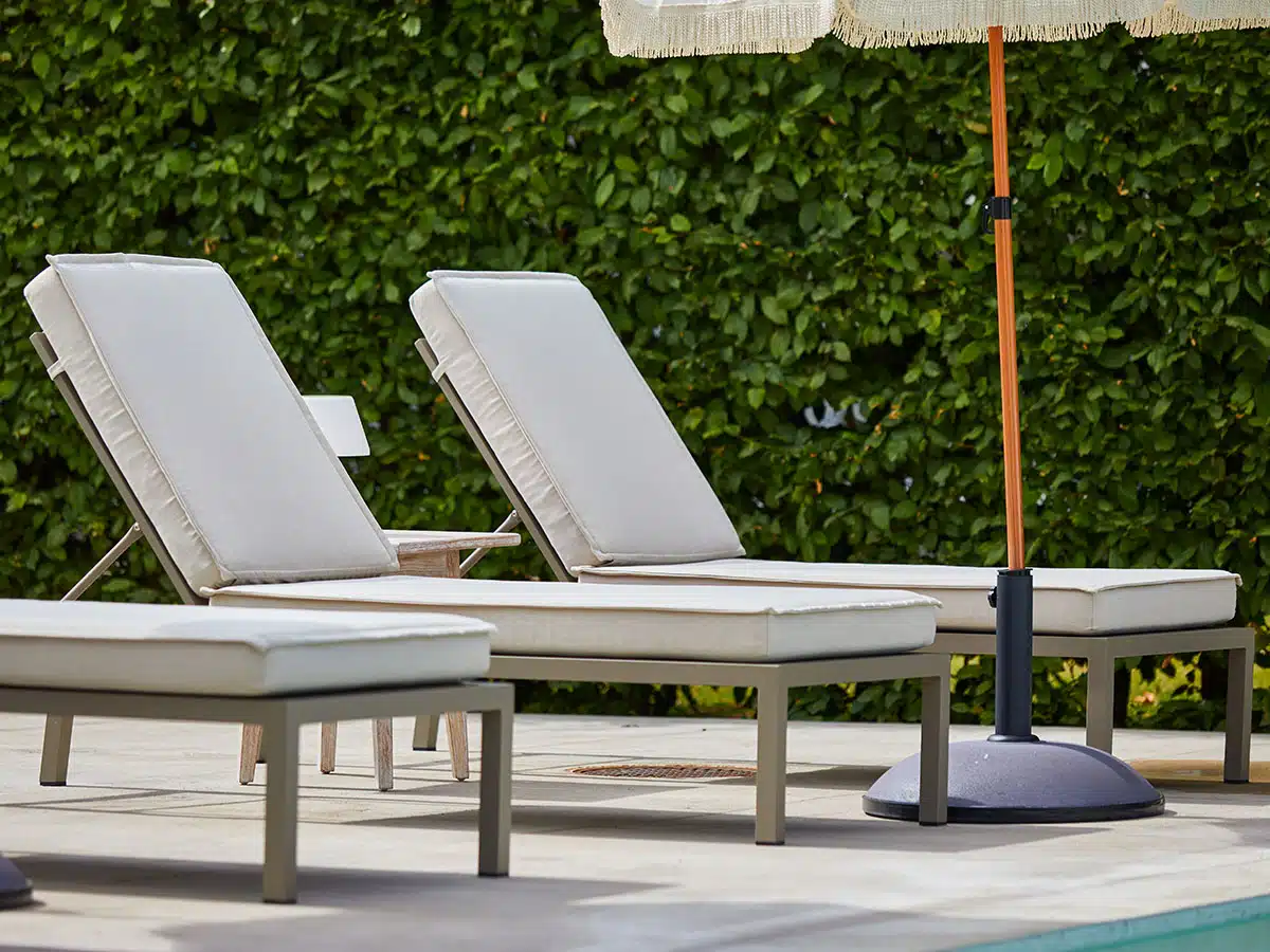 Njut av soliga dagar i Jet Set solsäng. Solsängen är i flätad UV-band på beige aluminiumstomme. Beige polyester dyna ingår!