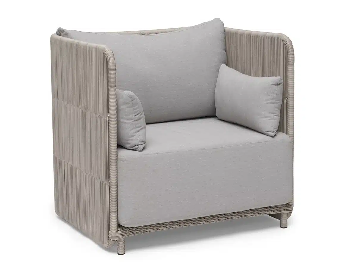 Sunproof dyna tillverkad av 100% olefin. Ett väderbeständigt och UVresistent premiumtyg. Med sin förmåga att klara effekterna av långvarig exponering för solljus, vind, regn och fuktighet lämpar sig dynan perfekt för utomhusmiljö.