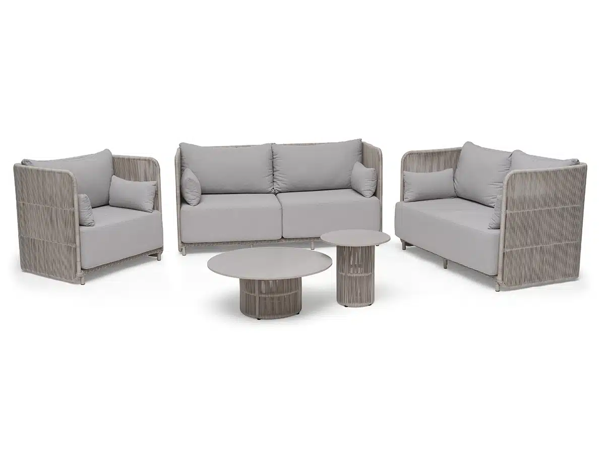 En stilfull möbel tillverkad av underhållsfri konstrotting och bordsskiva i keramisk sten.