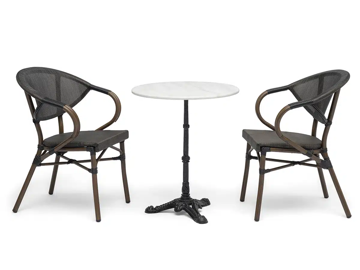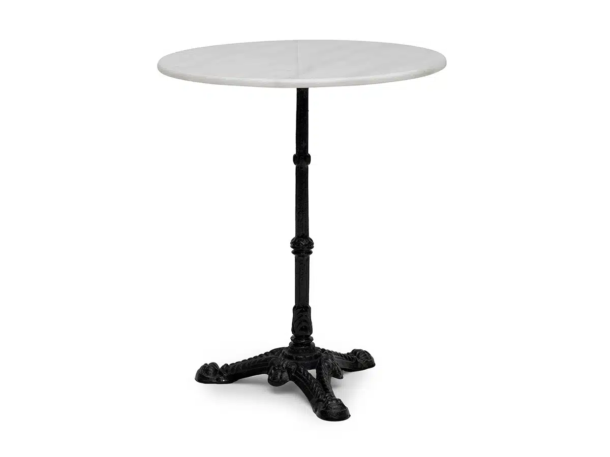 Charmigt cafébord i tilltalande design. Tillverkad i marmor med benställning i gjutjärn. Marmor är ett tidlöst klassiskt material som aldrig går ur tiden. Med sin unika karaktär kombineras det fint ihop med olika inredningsstilar. Välj vilken stil som passar dig!