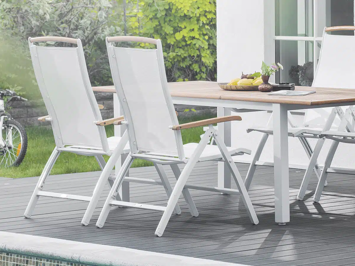 NYDALA är en av Hillerstorp mest populära matmöbler i aluminium. Påkostad i materialval och utförande. Bord med iläggsskiva och ställbara samt fällbara fåtöljer. Finns i flera färger och utföranden samt med flera tillval.