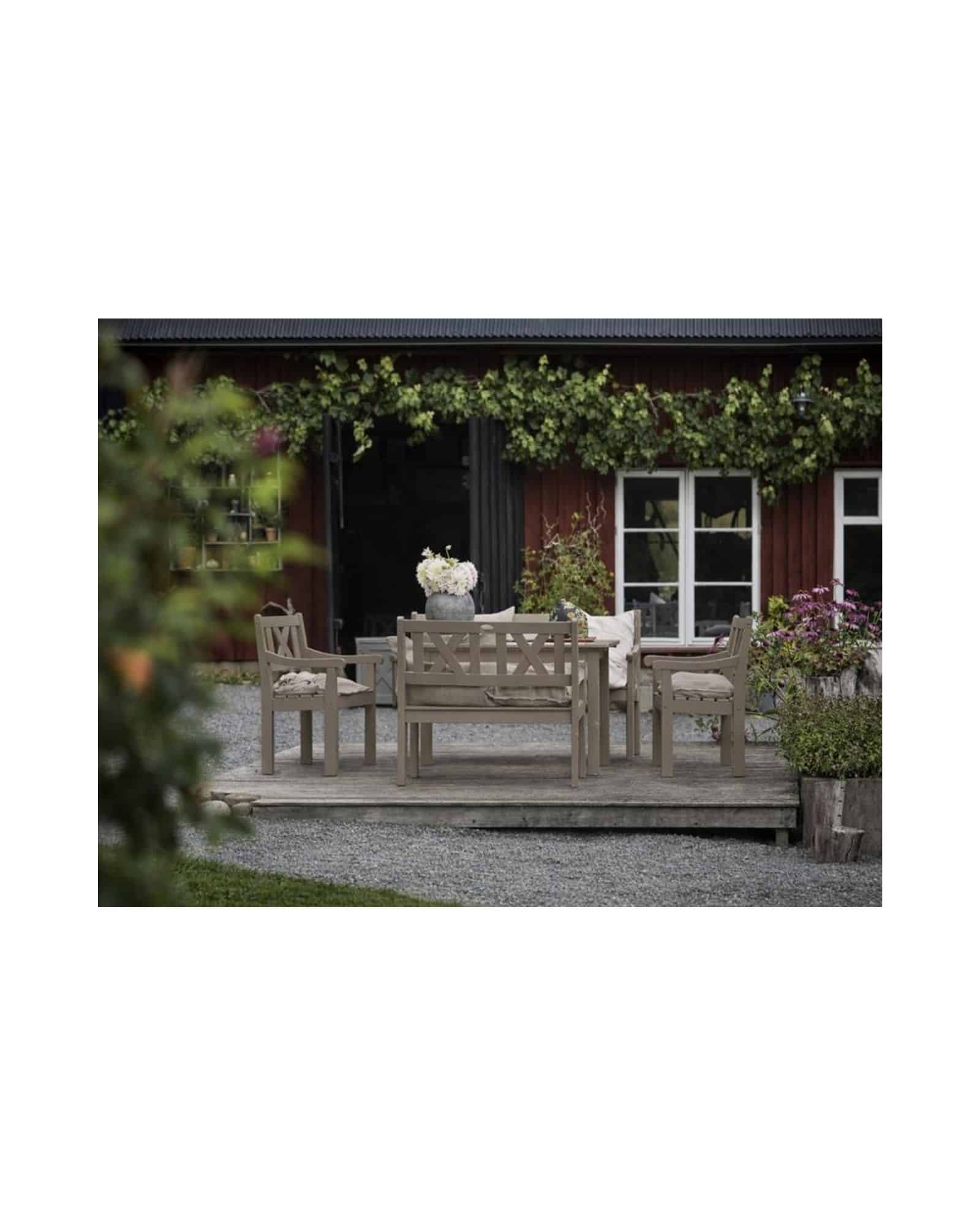 Den Småland Läckö 3-sitssoffa Sand är en tidlös, sandfärgad 3-sitssoffa i FSC®-certifierad kärnfuru. Perfekt för uterum eller trädgård, med klassisk design och hållbar kvalitet.