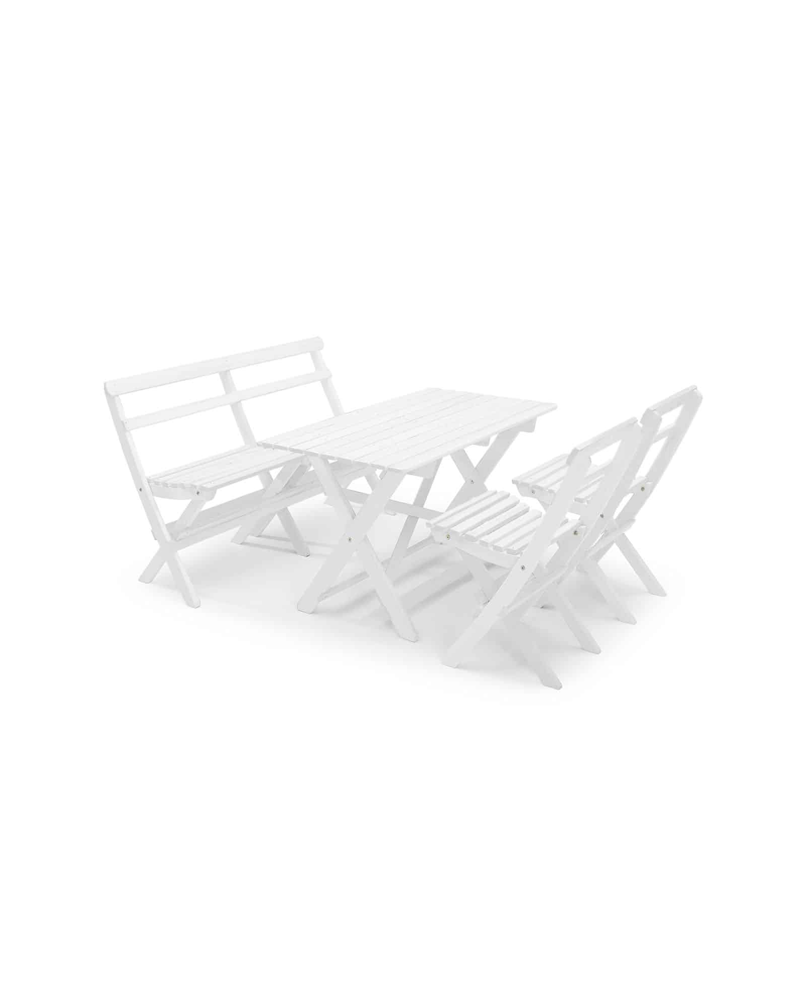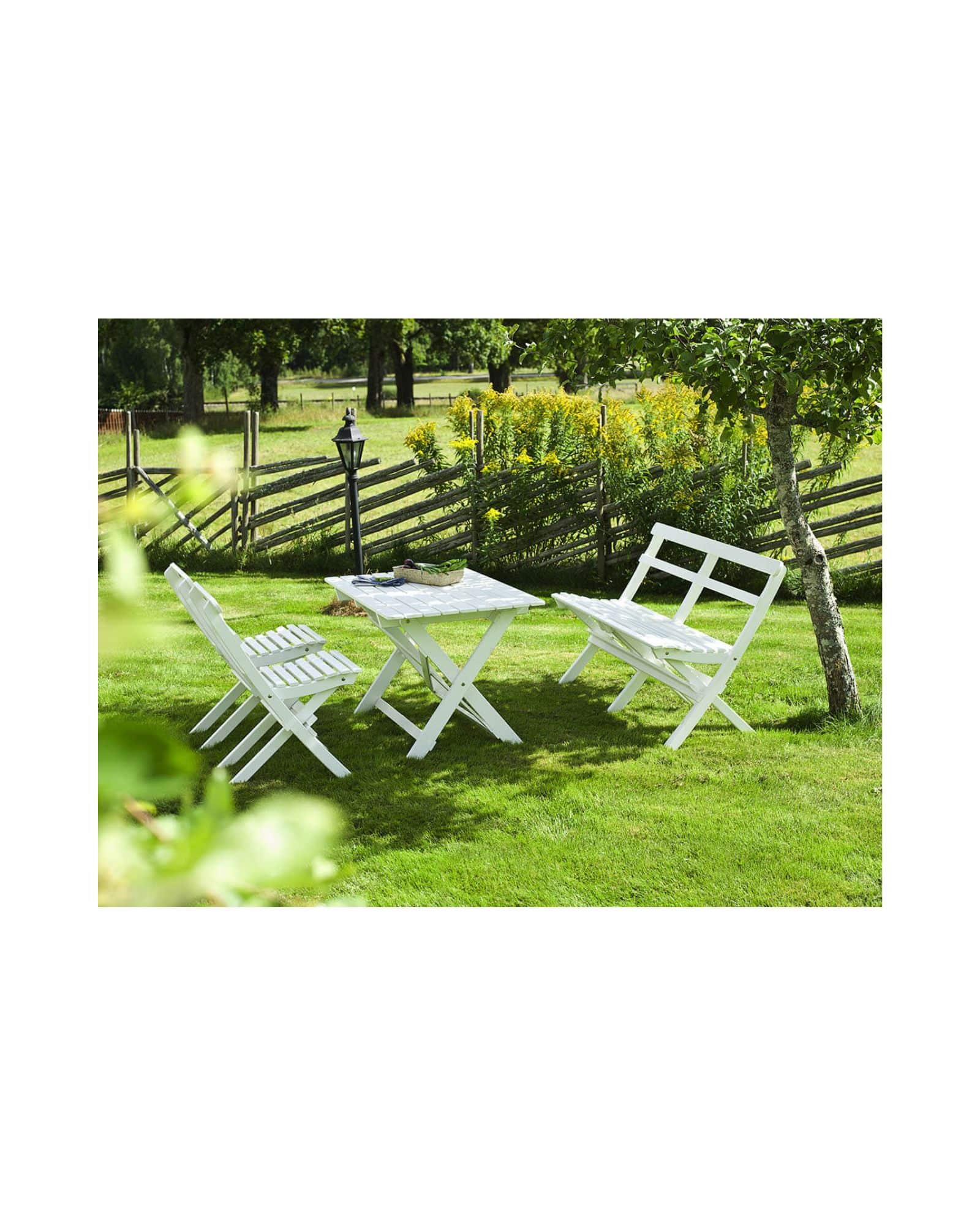 Torpet är en svensk klassiker inom trädgårdsmöbler. Soffa, stol och bord kan fällas ihop för enkel vinterförvaring och är tillverkade i FSC®-märkt kärnfuru.