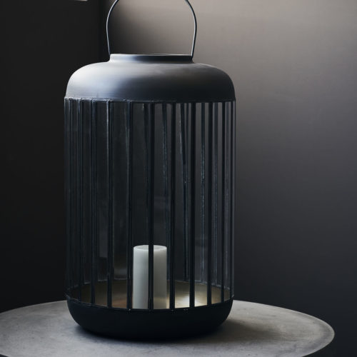 En ljuslykta som består av en cylinder i handblåst glas, omsluten av dekorativa horn i järn. Ljuslyktan ger en rustik och autentisk känsla, vilket gör den till en vacker inredningsdetalj för både moderna och klassiska miljöer.