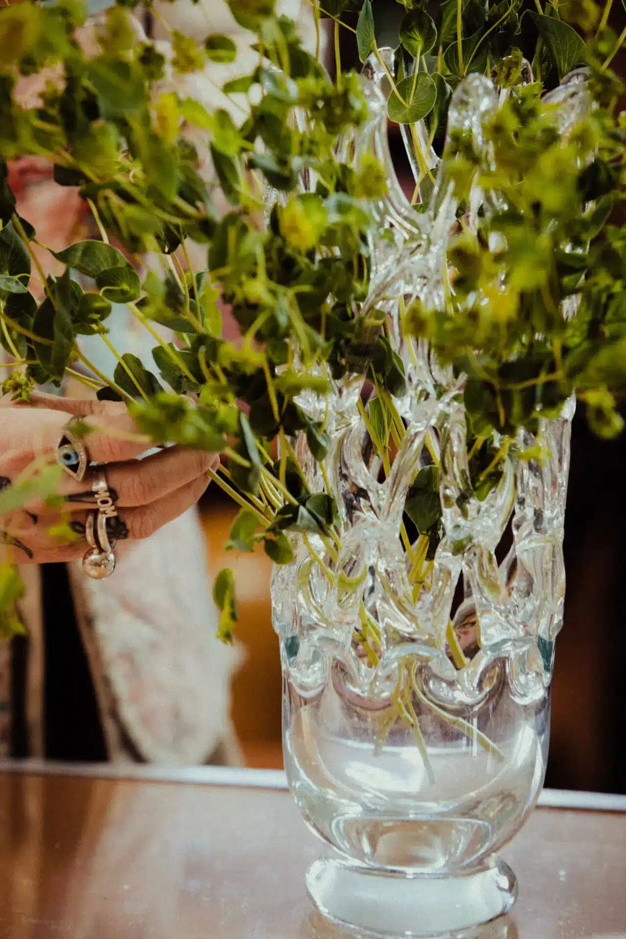 Unik glasvas med hålmönster som tillåter dig att placera ut blommor efter eget tycke och smak.